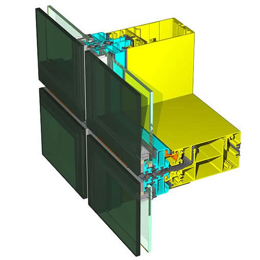 Curtain wall system consisting of a combination of self-supporting and unitised modular elements, with openable and fixed cells having sash/panel silicone hooking (GRIP 200 S) or silicone-mechanic hooking without visible profiles (S/M GRIP 200).